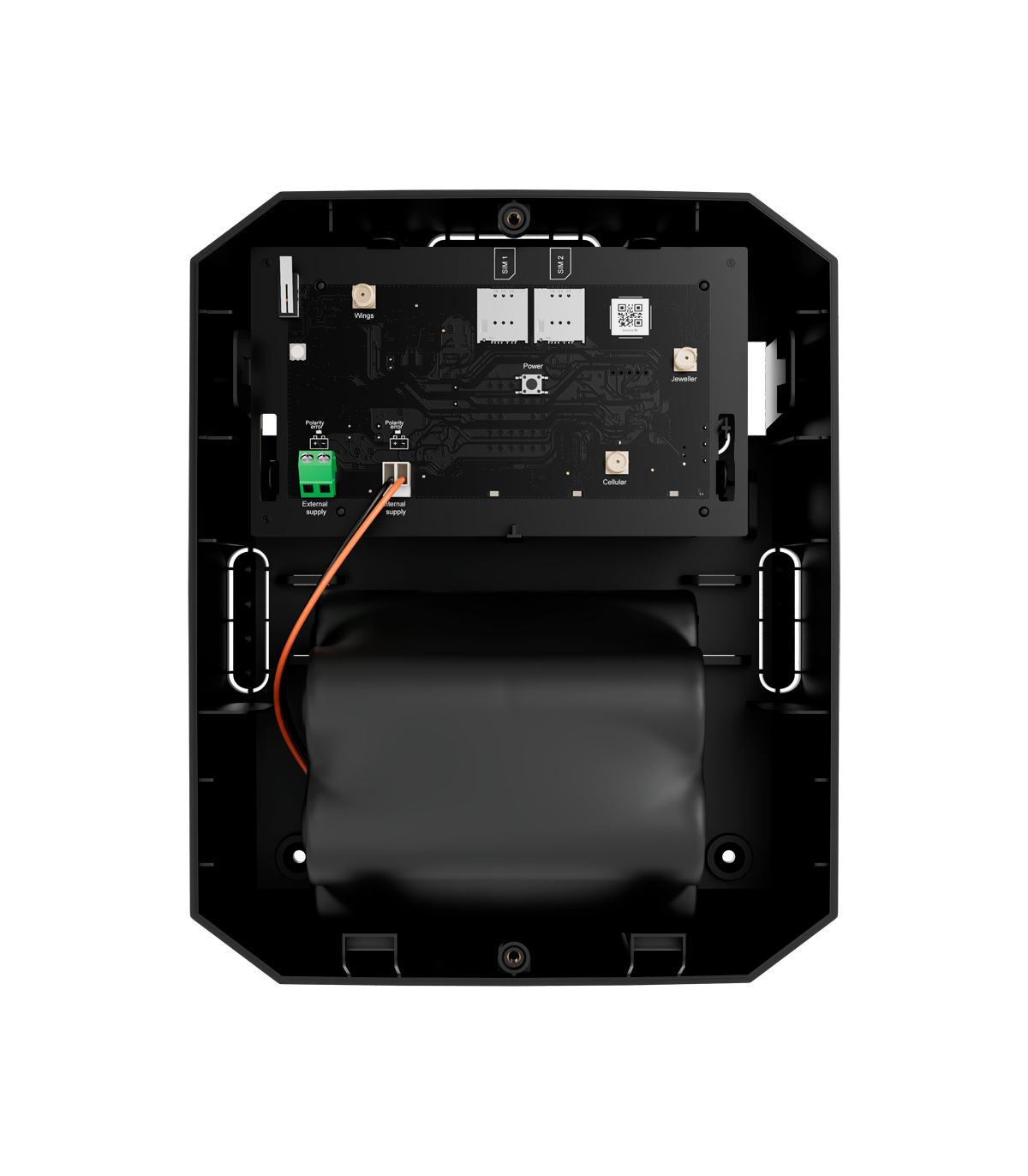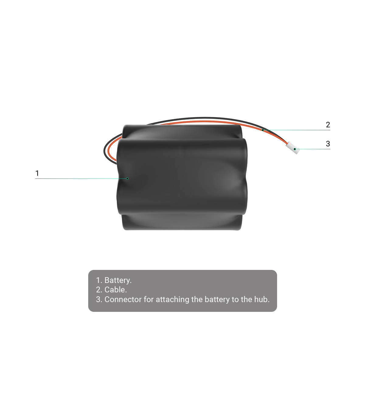 La batterie interne Ajax NB (7,2 V/95 Ah) a été spécialement conçue pour le Hub BP Ajax. Elle garantit un fonctionnement continu du système avec une autonomie allant jusqu'à 17 mois lorsque le Hub BP est en mode économie d'énergie.