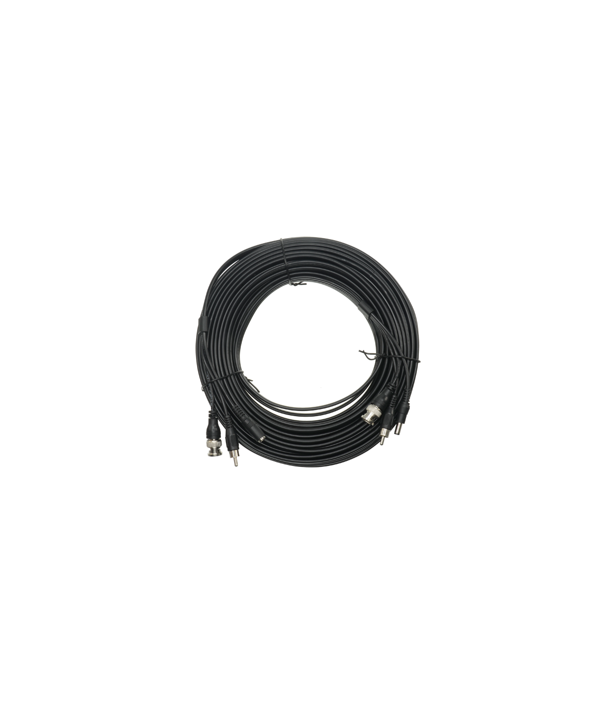 Câble combiné mini RG59, avec un câble d'audio pour ligne, plus un câble pour l'alimentation DC. Format tuyau plat pour réduire l'épaisseur de l'assemblage et de facilité d'installation. Faibles pertes. Longueur fixe de 20 mètres, avec connecteur mâle-mâle BNC (vidéo), mâle-mâle RCA (audio) et femelle-mâle Jack (alimentation) dans les extrémités.