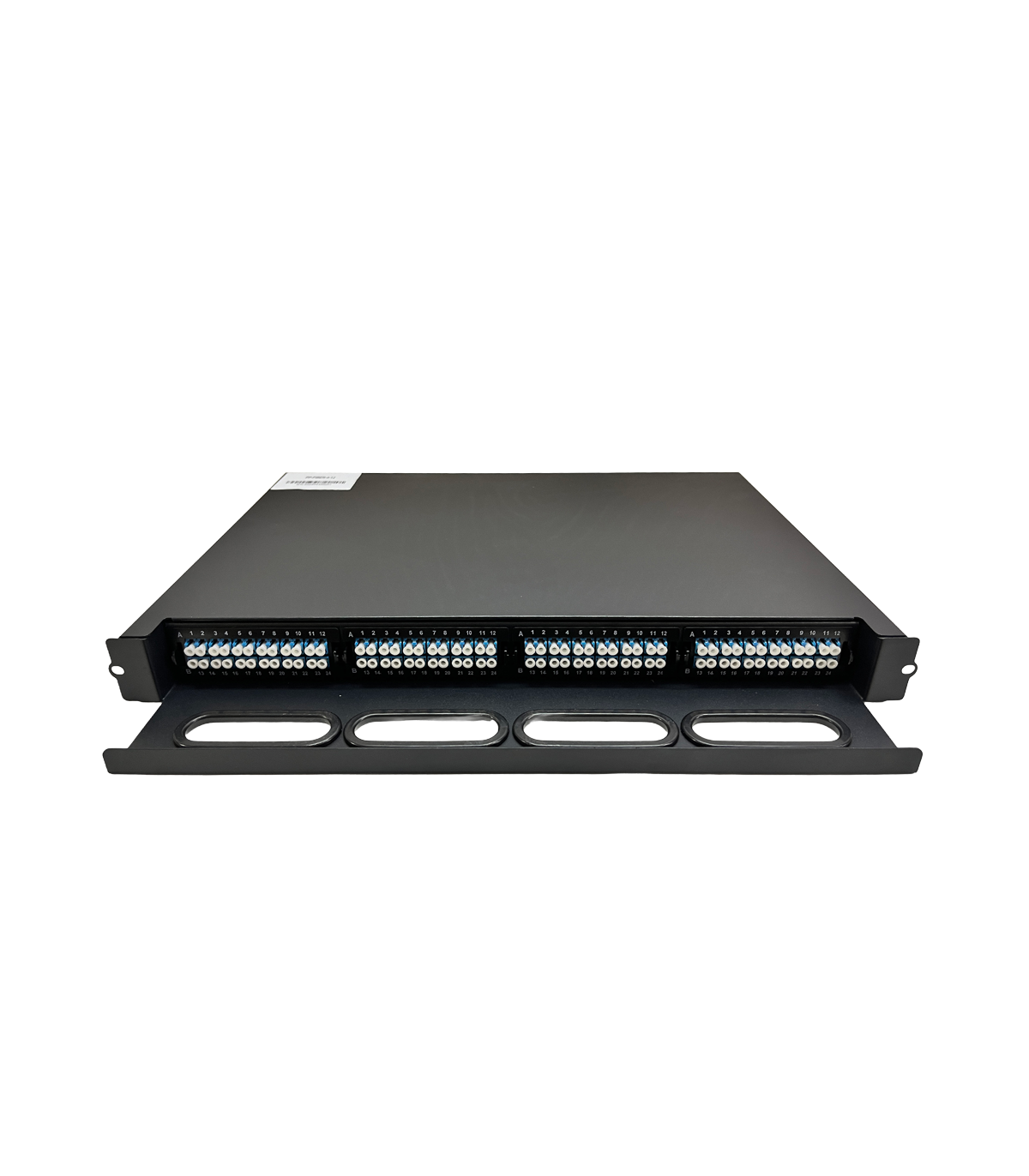 | Composants à l’intérieur du panneau de brassage optique | 4 cassettes avec 12 adaptateurs LC Duplex chacune. Ne comprend pas de pigtail à l'intérieur du boîtier. |
