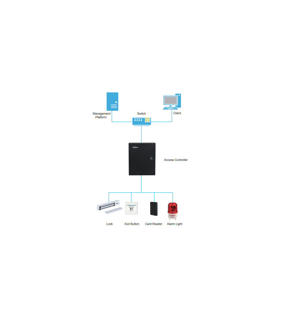 · Alarme anti-sabotage du lecteur, alarme intrusion, alarme de dépassement de délai de déverrouillage, alarme de contrainte, alarme de dépassement de seuil de carte non valide et alarme de mot de passe incorrect.