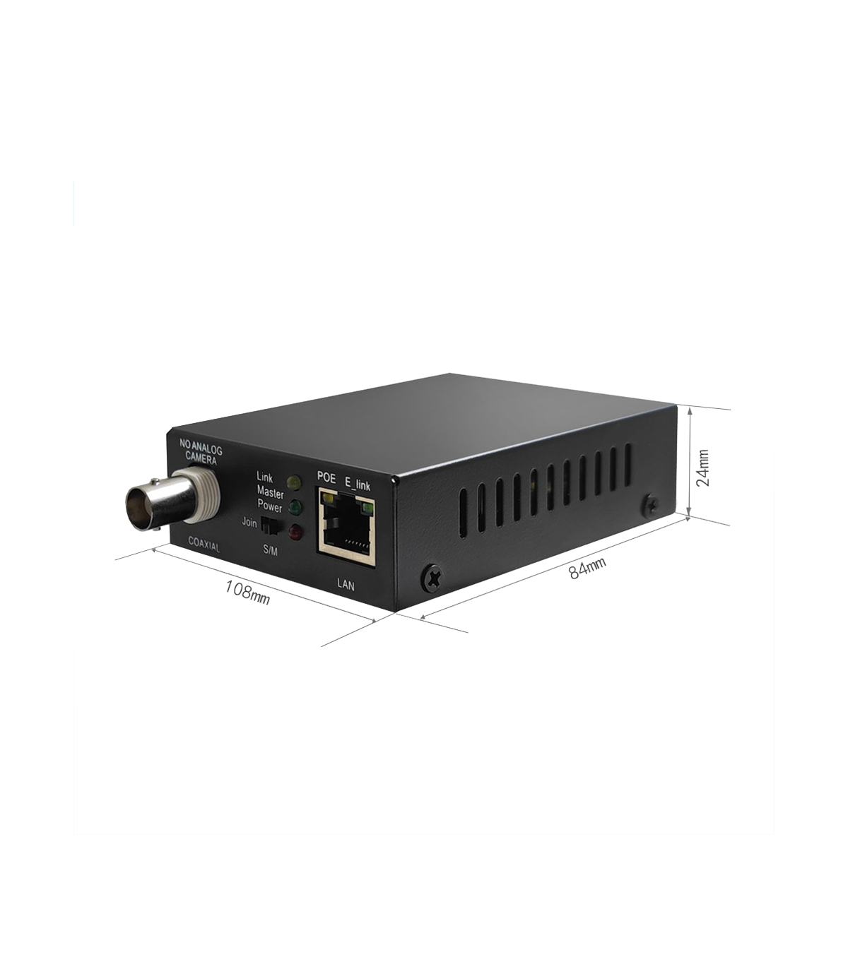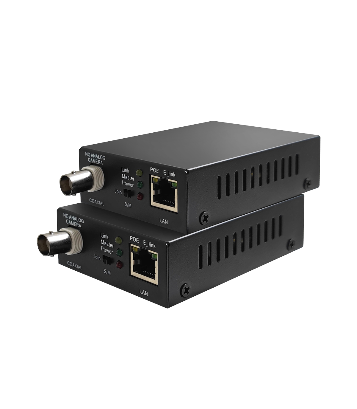 Prolongateur PoE pour câble coaxial permettant la transmission longue distance de signaux vidéo numériques et l'alimentation de caméras IP via PoE, sans alimentation externe.