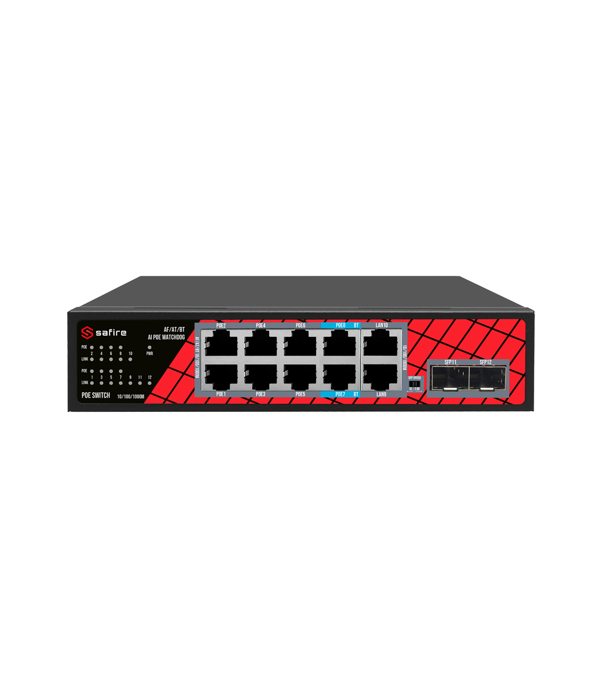 - 8 Ports PoE + 2 SFP + 2 RJ45